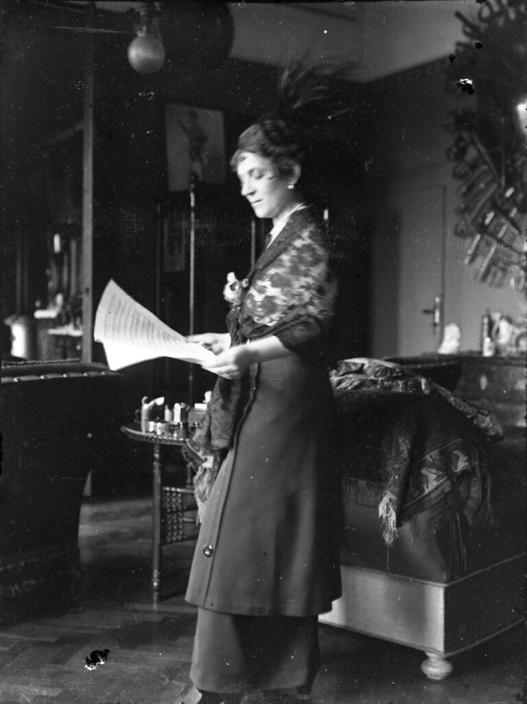 Woman reading musical notation. circa 1913