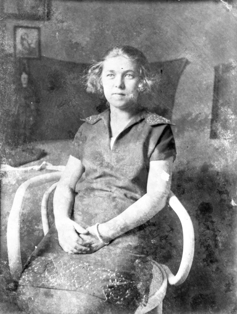 Woman sitting in chair. circa 1913
